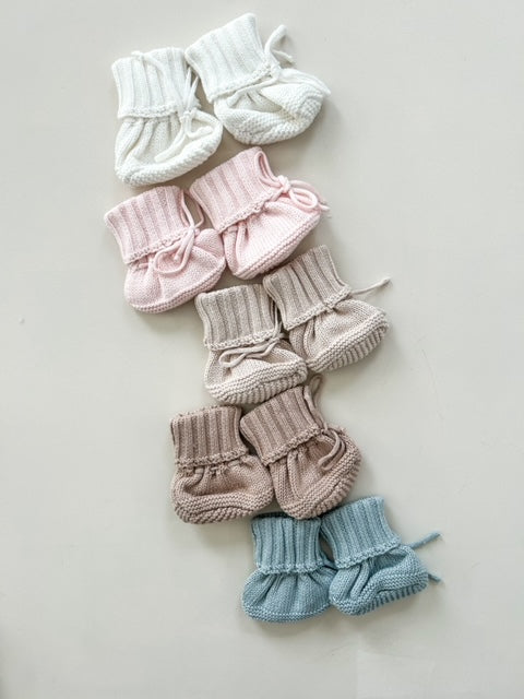 Cuff Newborn Lace Booties - Latte