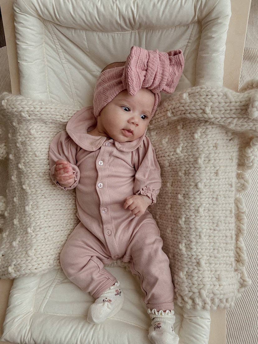 Milk white pointelle perfection — three pieces, one unforgettable outfit. Our Pointelle Romper Milk White Deluxe Gift Set takes our most elegant romper and completes it with a coordinating bow headband and lace cuff booties for the ultimate special occasion outfit.