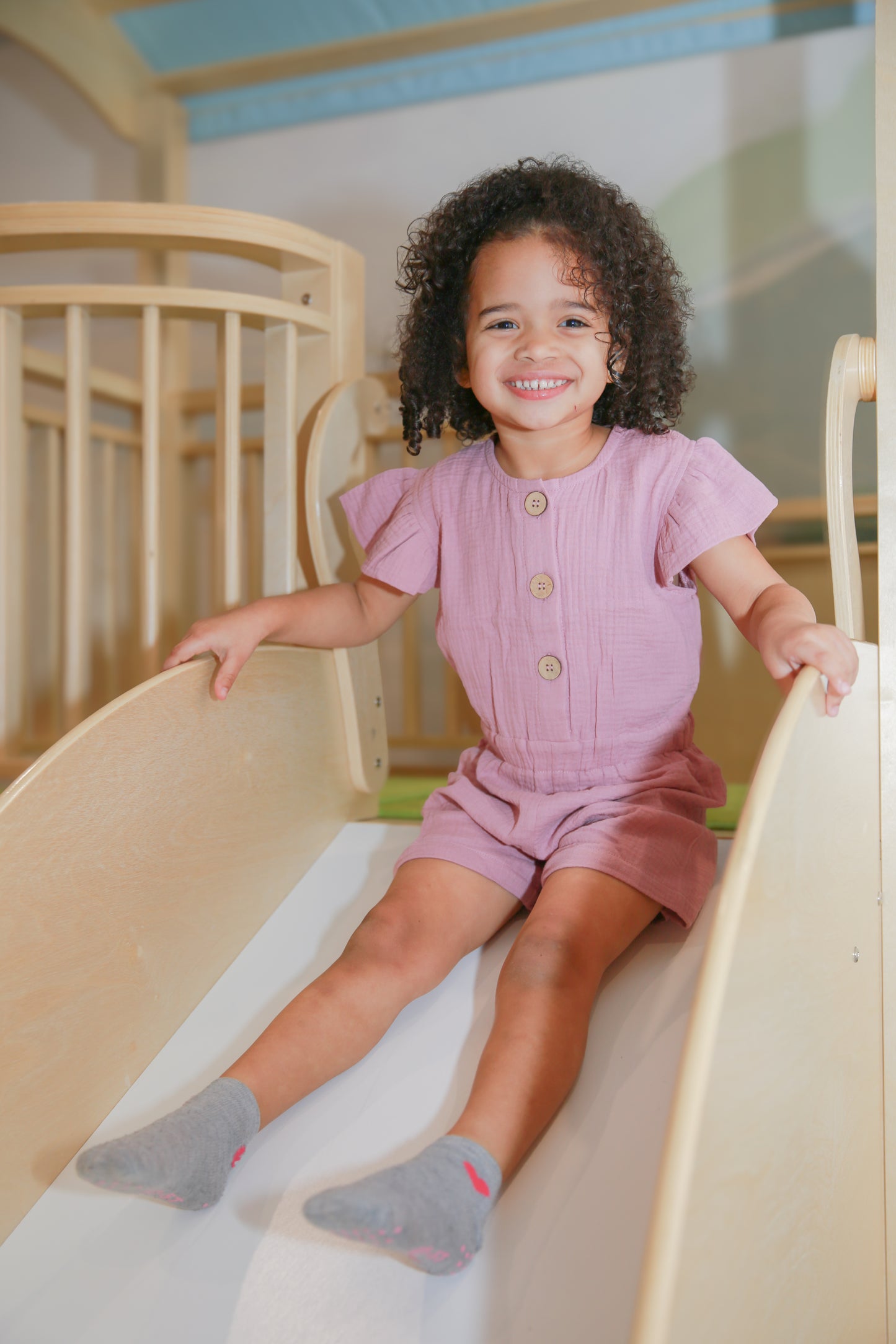 Size & Care: The Lucy romper runs true to size with a relaxed fit for comfortable play. GOTS certified organic cotton muslin gets softer with every wash. Machine wash cold, tumble dry low. The Lucy is also available in Marigold, Soft Sherbert, and Sage.