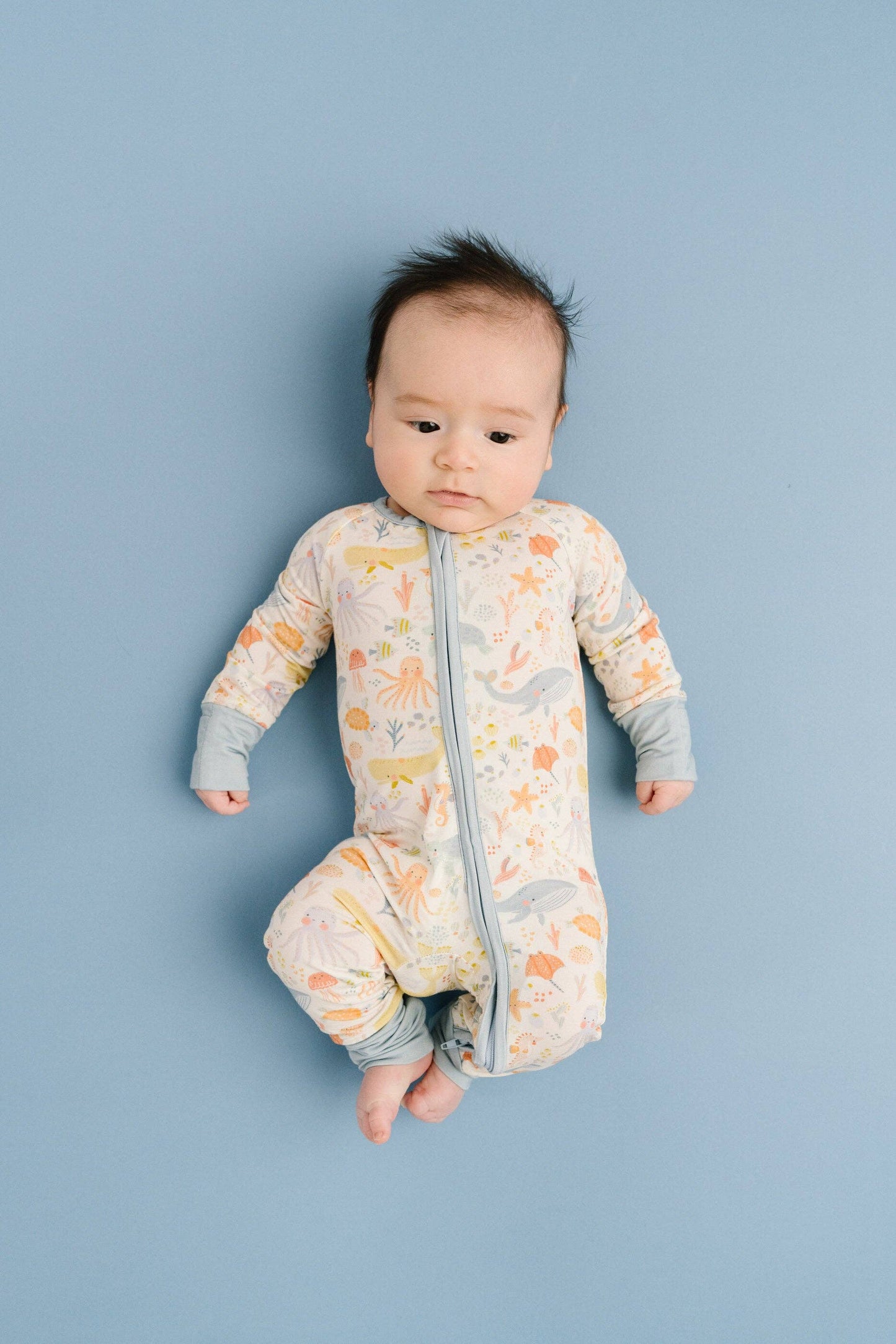 - Full-Length Zipper: Two-way zip from ankle to chin for quick, fuss-free diaper changes — even at 2 AM