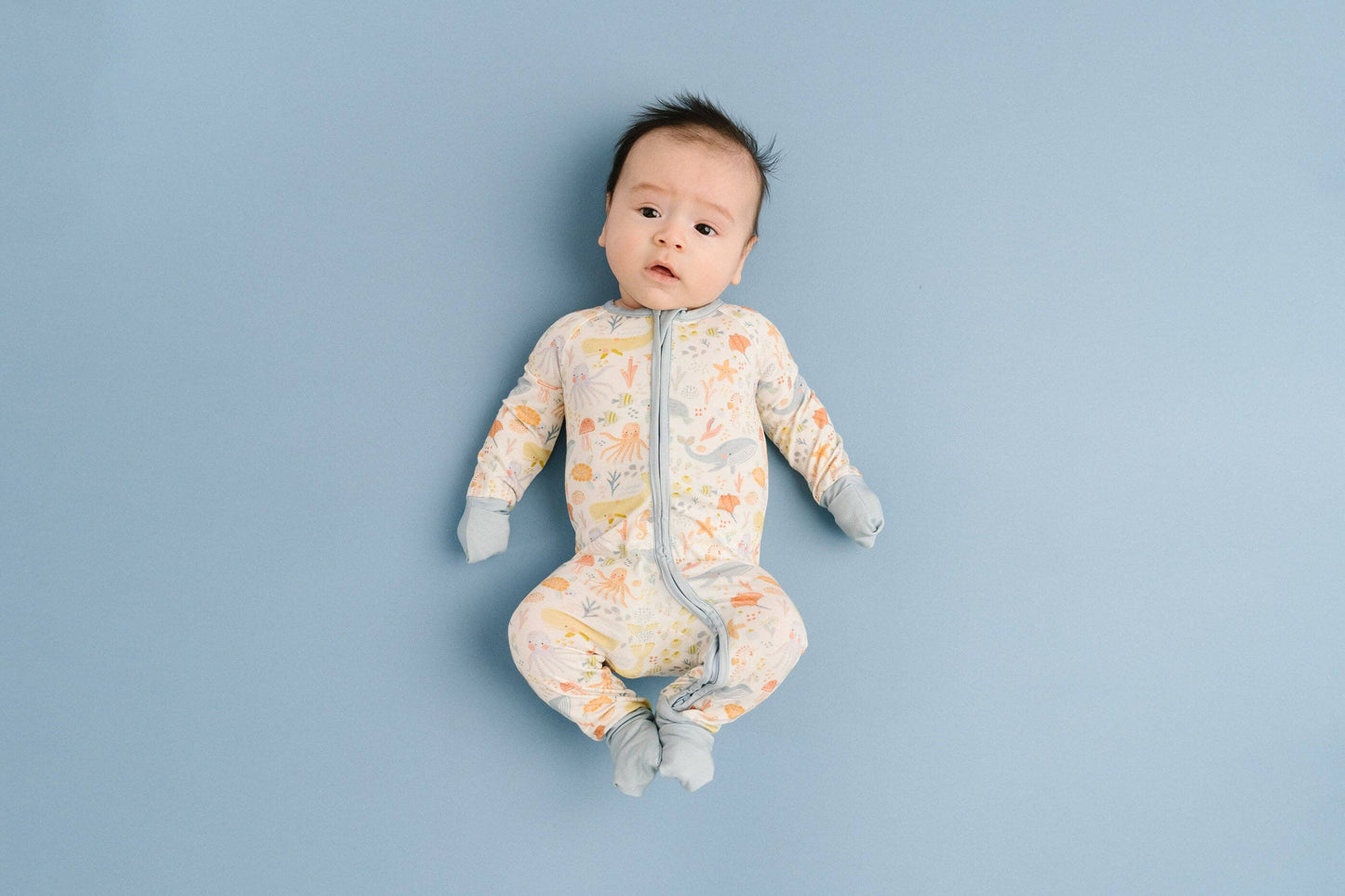 Sweet dreams start here with the Underwater Friends Bamboo Sleeper by Little One Shop! This dreamy footed pajama wraps your baby in cloud-like bamboo softness while friendly sea creatures swim across the fabric in a cheerful underwater print. Designed for peaceful nights and cozy mornings, this zippy sleeper combines the luxurious feel of bamboo with practical features parents love — because bedtime should be easy and adorable.