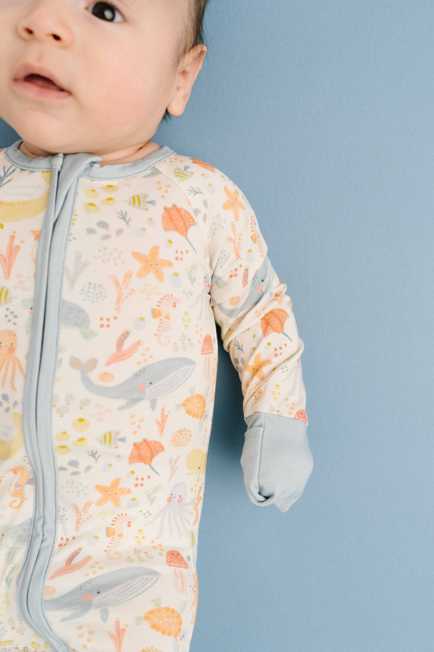 - Dreamy Ocean Print: Whimsical underwater friends design with colorful sea creatures for the sweetest bedtime look